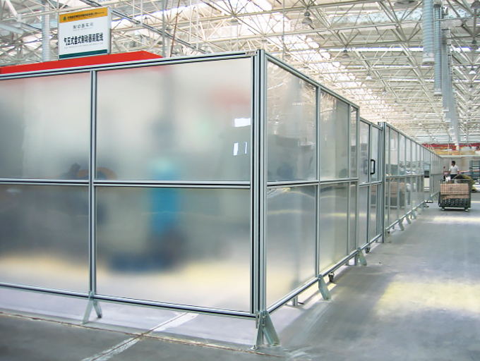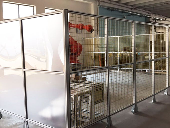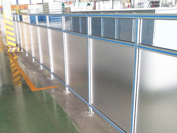 亞克力圍欄:框架采用鋁合金或碳鋼材質,鑲嵌亞克力板,整體美觀大方。亞克力板根據不同需求有透明和磨砂化處理。整個圍欄系統可以配置維修門、物流門,門上可以加裝智能鎖,與外面信號源進行通信無障礙通過,滿足現代自動化生產、物流的需求。