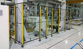 解決方案:機器人圍欄圍欄采用高度透明亞克力板,框架采用高品質40*40工業鋁型材框架,安裝可移動式